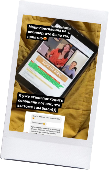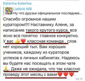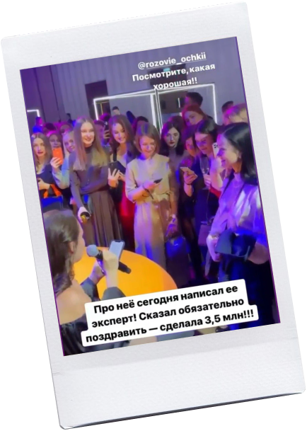 Кстати, после первого запуска с тем блогером я стала кейсом у Мари Афониной. На выпускном она даже неожиданно меня позвала и рассказала, как эксперт написала ей о благодарности мне и что она в восторге от того, как я вкладывалась.
